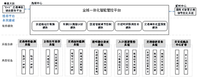 西环-友新快速路智慧化提升系统设计了“5+6+2”智慧交通总体架构,即建设包括快速路运行推演、车辆OD溯源分析、匝道智能调节控制、行程时间预测发布、交通事件处置预案5个软件模块的综合管控辅助决策AI子系统,建设包括交通事件检测系统、交通违法监测系统、入口匝道管控系统、主线行车诱导系统、视听融合快处系统、交通信息发布系统的6类智慧交通系统,并开展交安设施和中心设备的2项优化扩容。