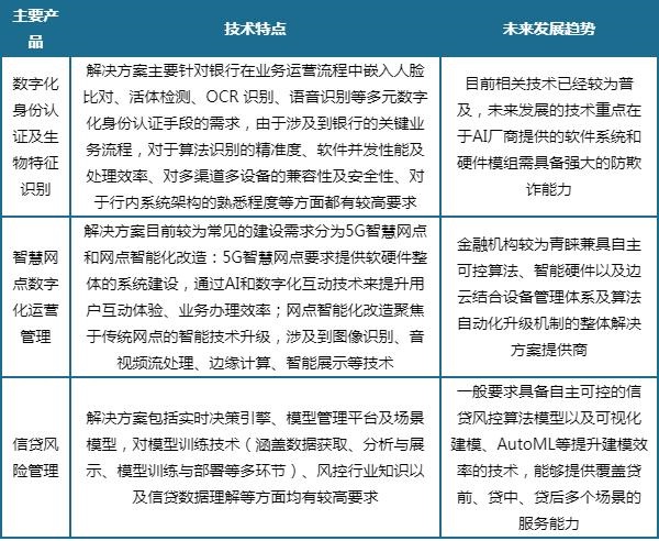 智慧金融领域,人工智能解决方案主要覆盖数字化身份认证及生物特征识别、智慧网点数字化运营管理、刷脸支付、信贷风险管理等场景。