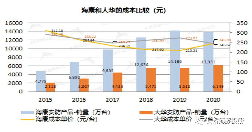 由于安防监控产品已经是规模生产的工业化产品,两家厂商的比较从量价和研发等多方面的维度展开: