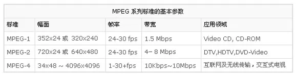 MPEG是“Moving Picture Experts Group”的简称,在它之前的标准叫做JPEG,即“Joint Photographic Experts Group”。当人们用到常见的“.jpg”格式时,实际上正在使用JPEG的标准。JPEG规范了现代视频压缩的基础,而MPEG把JPEG标准扩展到了运动图象。