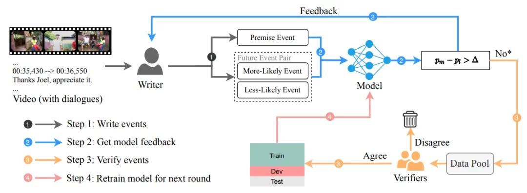 为了训练这个模型,雷杰和同事准备了 2.8 万个用例,并将其命名为 “VLEP(Video-and-Language Event Prediction)”。