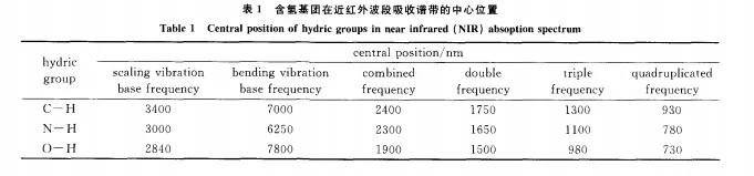近红外光谱中出现的吸收峰主要是有机物中含氢基团倍频和合频跃迁产生的,常见的易一燃易爆液体是含C―H键或者N―H键的化合物,而水分子中只含有O―H键,从表1可以看到C―H、N―H和O一H的在近红外波段的吸收峰位置有明显差异,因此利用近红外光谱区分易燃易爆液体和水理论上是可行的。