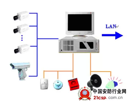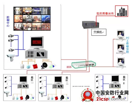 1、监控前端设备AV(音视频)信号,通过视频电缆送入系统控制主机/控制分机的AV输入端,报警信号送入报警输入端。系统控制主机/控制分机具有数字多画面显示、联动报警、灯光、电动门,音视频同步采集,硬盘记录监控图像,远程广播监控图像,监听/对讲等功能。