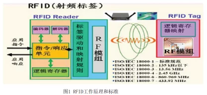 RFID技术的工作原理是:当电子标签进入磁场后,如果接收到阅读器发出的特殊射频信号,就能凭借感应电流所获得的能量,发送出存储在芯片中的信息(无源标签或被动标签)或者主动发送某一频率的信号(有源标签或主动标签)。阅读器读取信息并解码后,送至中央信息系统进行有关数据处理。工作原理和技术标准参看图1。
