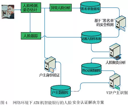 ④ 非实时分析――把热心访客数据库中的人脸与银行卡户主数据库中的人脸样本进行多对多比对,识别那些经常光顾ATM、且交互业务达到一定数额的(此信息来自于银行的业务信息系统)访客。赋予他(她)们VIP银行卡户主的标识。