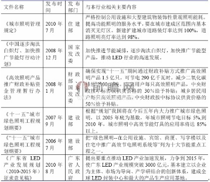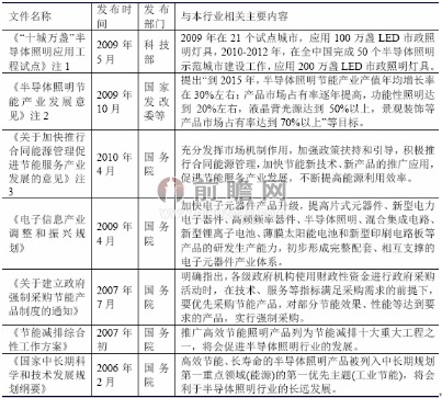 图表1:中国LED行业相关政策及法规(一)