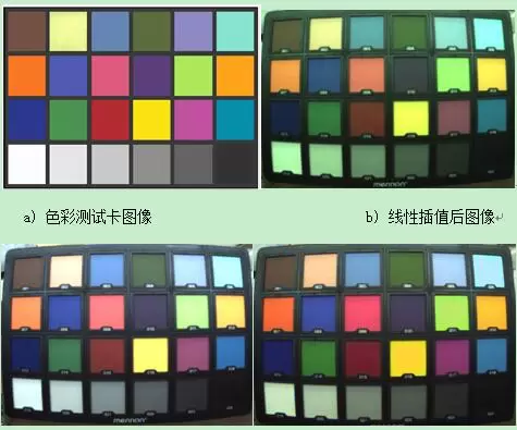 对前文所述方法,本文进行了实验验证。我们采用了美侬24色色彩测试标板,采用了实验结果如图5所示,从图中结果可看出处理后的图像色彩更加真实,经验证,本文所提的色彩处理能够满足随后的图像处理需求。