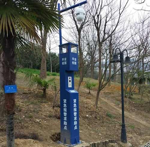 在校园中,紧急报警装置通过校园网络联至安防监控中心值班室,与校园监控平台、无线基站、摄像机监控系统和对讲机系统联为一体。当监控室值班员接到报警柱上传的报警信息后,能立即与报警人实时进行语音、视频对话,了解报警人所遇到的问题,通过报警柱地理位置信息和就近安装的摄像机,马上跟踪嫌疑人去向,并通过对讲机系统指挥调动所在校区保卫人员,及时赶赴现场,并可封堵大门、围追堵截、及时打击违法犯罪行为,处置校园内各类突发事件,变以往案发后被动查询取证为发案后即时主动打击处置,更有效维护校园安全。