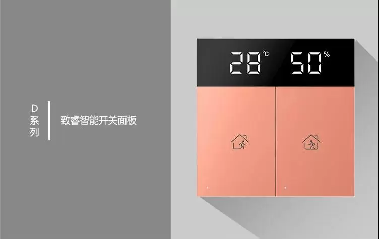D系列智能开关面板主要包括灰色、红色、土豪金三种主色,在外观上融合线条的美感,映衬简而不凡的设计理念。