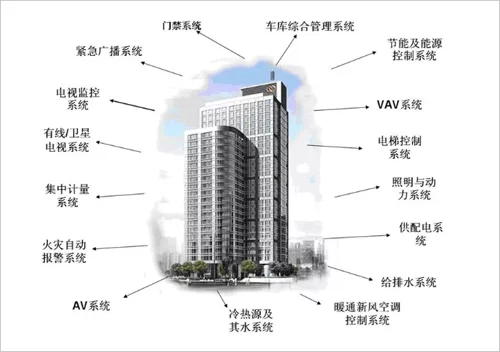 (1)建筑设备运行管理的监控,包括:暖通空调系统的监控(HVAC);排水系统监控;送排风系统监控;供配电与照明系统监控;电梯运行状况的监控;冷热源系统的监控。