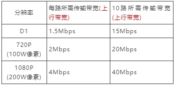 即:理论上采用D1视频格式各地方监控所需的网络上行带宽至少为15Mbps;720P至少为20Mbps;1080P至少为40Mbps。