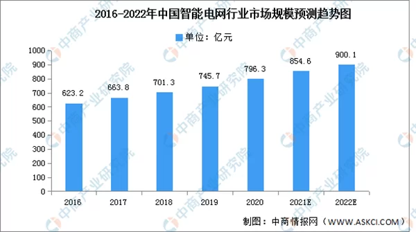 【安防在线 www.anfang.cn】智能电网是建立在集成的、高速双向通信网络的基础上,通过先进的传感和测量技术、先进的设备技术、先进的控制方法以及先进的决策支持系统技术的应用,实现电网的可靠、安全、经济、高效、环境友好和使用安全的目标。“十四五”期间,加快电网基础设施智能化改造和智能微电网建设,提高电力系统互补互济和智能调节能力,加强源网荷储衔接,提升清洁能源消纳和存储能力,提升向边远地区输配电能力,推进煤电灵活性改造,加快抽水蓄能电站建设和新型储能技术规模化应用。近年来,在政策利好下,我国智能电网市场规模持续扩大,2020年达796.3亿元,同比增长6.78%,预计2022年市场规模将超900亿元。