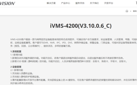 目录 隐藏 1. 概述 2. IVMS4200官方功能介绍 3. IVMS4200下载 海康威视4200软件是一款专业的视频监控管理软件。它被广泛用于各种场所,如企业、政府机构、学 … 继续阅读 海康威视4200软件(海康威视4200软件:功能强大的视频监控管理工具)