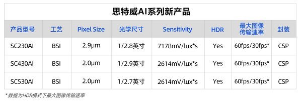 SC230AI/SC430AI/SC530AI现已送样,其中SC230AI已实现量产,SC430AI与SC530AI预计将在2021年7月实现量产。