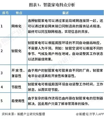 《通则》明确定义了智能家电、智能特性及智能化技术等概念。《通则》对智能特性的定义比较详尽,规定标准中的智能特性特指人工智能特性。同传统家用电器比,智能家电具有以下特点: