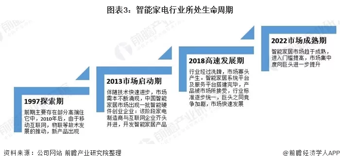从发展阶段看,行业经过洗牌,市场寡头产生,行业标准逐步统一,我国智能家电行业进入高速发展阶段。