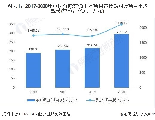 据ITS114数据统计显示,截止2020年12月底,我国智能交通千万项目(不含公路信息化)市场规模约为296.12亿,项目数1400个,市场项目平均规模约为2115.12万。2017-2020年,中国智能交通千万项目的市场规模逐年增长,项目平均规模也呈上升趋势。