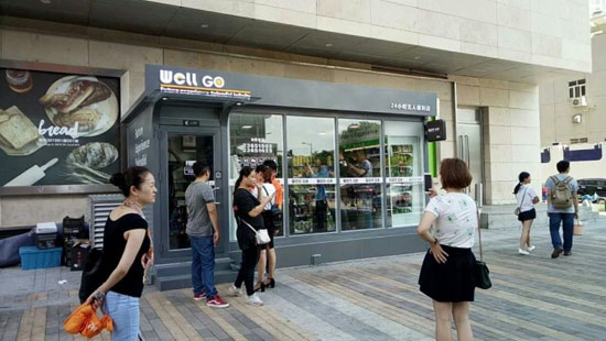 笔者抵达Well Go无人便利店时是周三下午三点左右,虽然是上班时间,无人便利店的位置也不算显眼,但围在Well Go跟前等待进店体验的群众还是为数不少。