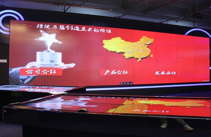 等离子拼接大屏在运用于高端商业显示屏时,可与小型拼接桌相连,配合ICT smartPerform多媒体互动演示系统,演示者可在触摸互动桌面上进行操控演示,观众通过大屏观看演示内容。这种组合方式用于控制室、企业展厅、会议室等场所,指挥调度、发布品牌信息、经营理念、企业文化、生产流程等。