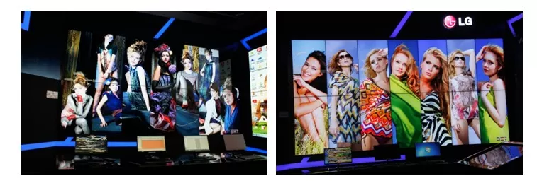液晶拼接墙用于商业展示,其特点是色彩鲜明、亮度高,另外液晶屏体轻巧,拼缝小,拼接方式有横向、纵向、异形等等多种方式,可实现不同的创意组合,令展示方式更具灵活性及个性化!