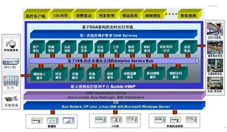 新太视频监控联网管理平台采用J2EE开放式架构,可以在WINDOWS/LINUX操作系统下运行,具有强大的伸缩性。