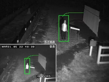 如下图,体现红外光在智能分析与高清监控系统中的用处。