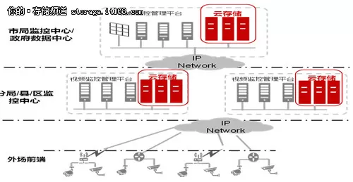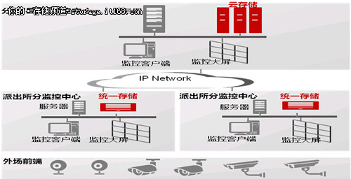 在各派出所布置高性价比存储设备,用于存放实时视频录像。针对该方案,华为存储提供OceanStor S2600T实现跨派出所统一部署、管理、监控。该方案有效降低网络投资,减少骨干网压力以及网络故障影响,同时提升存储数据可靠性。方案部署如图1: