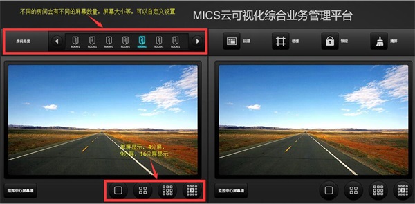 MICS云可视化综合业务管理平台——是集合了音视频信号,监控设备信号的调度上屏,信号源复制,以及分房间信号调度,电话呼叫,灯光控制,空调控制,窗帘控制,音响控制,分屏控制,摄像头远程遥控,回显,录播等等一体化的综合业务管理平台。