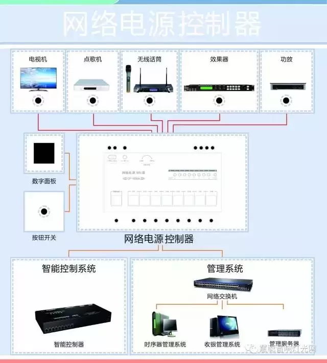 网络电源控制器可以应用在多种环境,除了计算机和通信 数据中心,在拥有多种电子设备的;联网环境也有很大作用,包括KTV 环境。