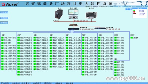 本项目的电力监控系统,可以实现对广场内低压配电回路的实时监控,有利于电能管理。另一方面,电力监控系统不仅能够准确的表示出回路的用电状况,它还具备网络通讯等功能,能够与计算机、串口服务器等设备进行组合,及时的显示广场内各个配电回路的运作状态,当广场内电力系统的负载越标时,电力监控系统能够迅速报警,发出语音提示。另外,电力监控系统还能够生成报表、曲线图等统计信息,便于有关人员分析广场内各部分的用电状况,使广场内的用电活动更加安全,从而保证广场内人员的生命安全,提高工作人员的工作效率。