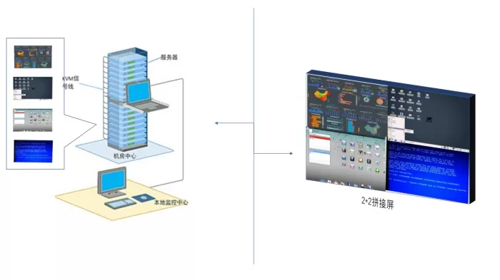 首先,大屏幕和KVM必须建在同一个房间内。我们不能在大屏幕上发现了问题,再花几分钟时间跑到机房去处理问题。