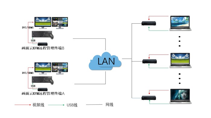 博汇画面云IPKVM由BHIP108操控端+BHVGA102-K/BHDV102-K接入端2部分组成。主要适用于如下3种情况: