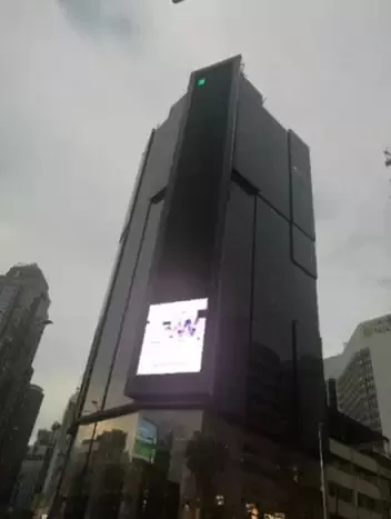 这块大厦巨屏只有底部和顶部的一个模组能够点亮