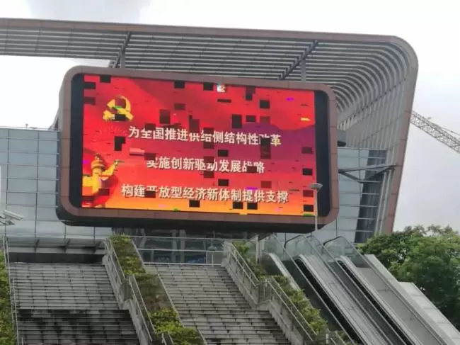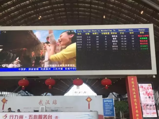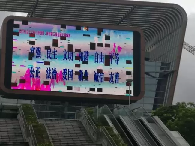这块显示屏多处模组故障、偏色失控 拍摄于深圳北站