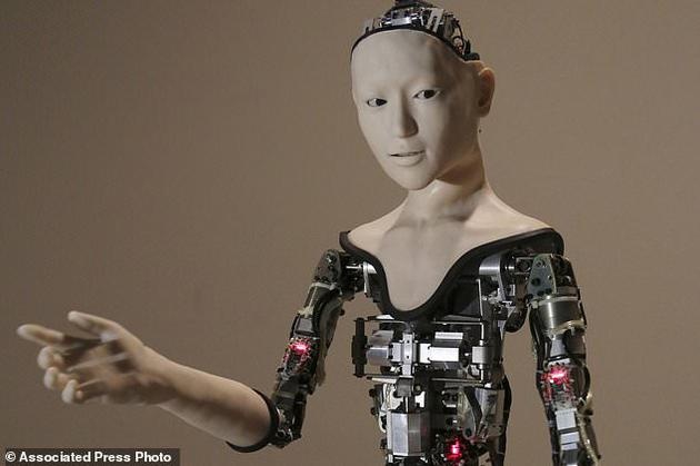 图为在东京国家新兴科学与创新博物馆展出的类人型机器人“Alter”。计算机科学家和语言学家称,随着机器变得越来越聪明,幽默感也许是使人类区别于机器的最后一项特征。