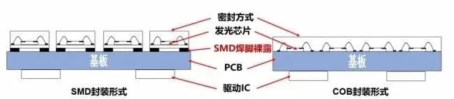 COB面板的每一个像素封装后都是一个密封得很好微循环系统,它的电功能和散热功能都是通过胶体内部电路来实现的。是一个真正的封闭式系统,不可能给任何元器件提供任何的开放机会。