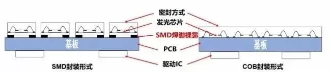 散热性能对比散热性能的优劣直接影响LED产品的寿命,未来销售产品不谈技术出处就说你的产品寿命长那是耍流氓。COB显示面板LED芯片的正负极是直接和PCB板上电路连接,导热路径最短,没有任何的中间介质,热阻值最小,是一个最完美的散热优化技术。