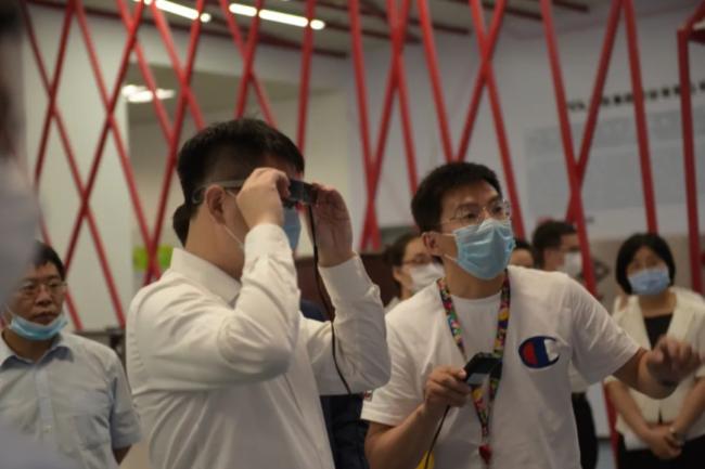 工作人员打开电脑,连上5G信号,视频连线生产车间的工人,了解生产机器发生的故障。现场工人则戴上AR眼镜,将机器状况实时传输到电脑显示屏上。在工作人员指导下,工人通过一系列操作,很快解决了机器故障。