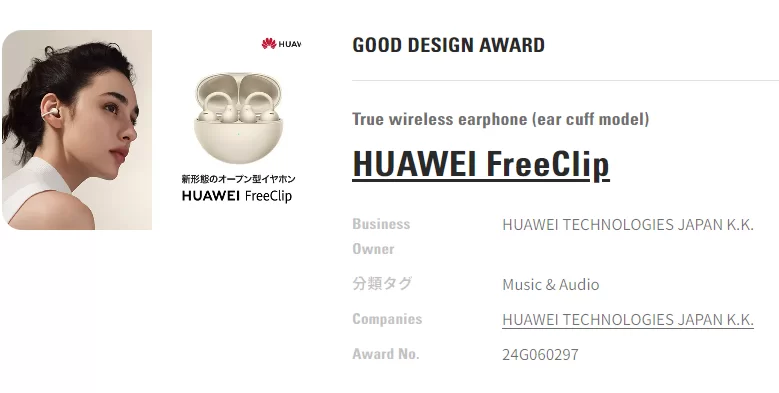 近期,日本GOOD DESIGN AWARD(优良设计奖)获奖名单正式公布,华为WATCH FIT 3与华为FreeClip耳夹耳机从众多参赛作品中脱颖而出,荣获2024年度日本优良设计奖,再一次彰显华为智能穿戴在时尚美学领域的绝对实力。