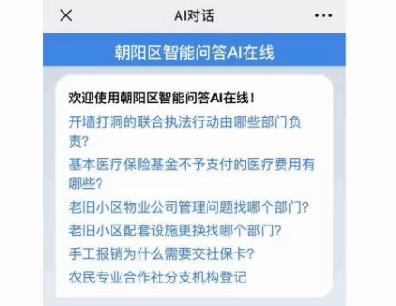 此外,在“北京智慧朝阳”微信公众号,通过AI应用,居民可进行医保报销、生育保障等内容咨询,企业可咨询工商注册、税务登记等事务,进一步优化了营商环境、提高办事效率及居民的满意度。
