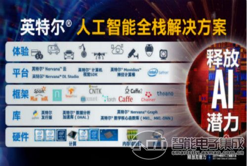 人工智能的应用场景十分复杂,需要不同特性硬件平台以及软硬件协同优化,才能有效提升数据洞察的速度和准确性。充分利用自身技术和产品创新的整合优势,英特尔提供了独一无二的人工智能全栈解决方案,包括:领先而完整的硬件平台,涵盖至强处理器、至强融核处理器、英特尔Nervana神经网络处理器和FPGA、网络以及存储技术等;针对深度学习/机器学习而优化的基于英特尔架构的数学函数库(Intel MKL)以及数据分析加速库(Intel DAAL)等;支持和优化开源深度学习框架如Spark、Caffe、Theano以及Neon等;构建以英特尔Movidius和Saffron为代表的平台以推动前后端协同人工智能发展。英特尔人工智能全栈解决方案致力于帮助广泛的行业和企业更方便地获取、开发和部署人工智能应用,并将人工智能潜力在金融、医疗、自动驾驶、安防、工业等各个领域充分释放出来。