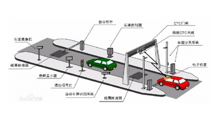 ETC系统由后台系统、车道控制器、RSU和OBU等组成。ETC车道与传统的MTC车道建设相似,主要由ETC天线、车道控制器、费额显示器、自动栏杆机、车辆检测器等组成。