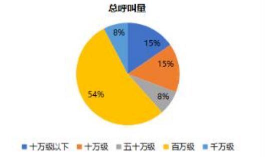 在产品数量最高的智能服务机器人产品中,智能外呼机器人和医疗场景的智能服务机器人(实体)应用量最高。在此次疫情中,智能外呼机器人的作用是提高筛查效率、减轻基层工作者压力。据中国人工智能产业联盟智能外呼机器人的首轮评测统计的参评产品数据显示,截至2月7日,54%的产品总呼叫量为百万级,15%的产品总呼叫量达千万级,38%的产品日呼叫量达到万级,31%的产品日呼叫量达十万级。
