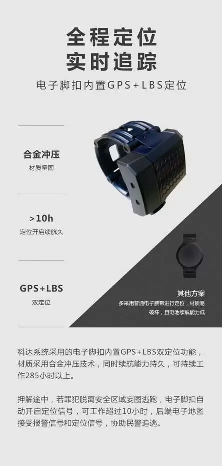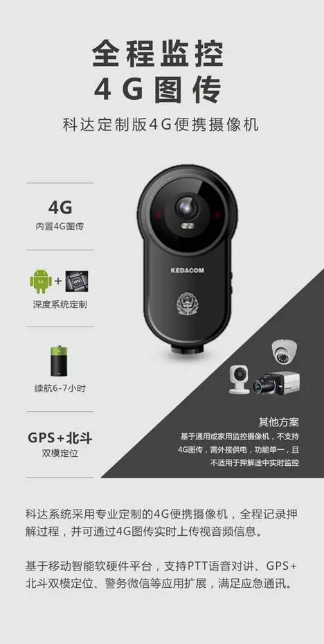 全程监控4G图传、全程测距超距报警、全程定位实时追踪三大特性,使得科达防脱逃系统具备鲜明的技术优势与实战优势。