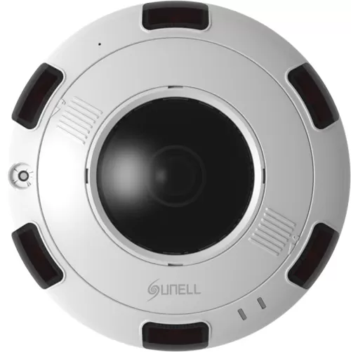 景阳科技鱼眼全景摄像机在外型设计酷似UFO,非常精致和时尚,中间全景鱼眼镜头,围绕周围小窗口均匀分布多组点阵式红外灯,红外距离可以到达10米。