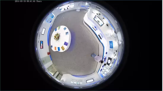 与传统监控摄像机相比,鱼眼全景摄像机特征是360°监控视角,这可替代多台传统摄像机组合才能达到的视角范围。比如,在会议室、办公室、大厅/大堂、商场、仓库、车间等大面积视野宽广区域,一台全景摄像机基本上可以搞定全部监控视野。