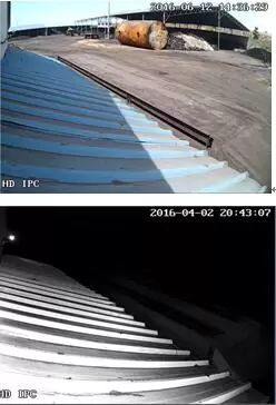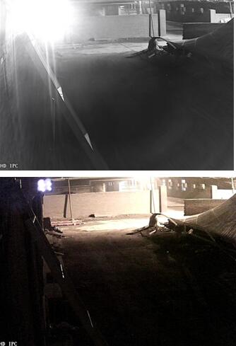 通过第二张图可以看出,客户在那个位置安装了一台IPC,夜视中的强光是IPC的红外灯造成的。应该对摄像机的镜头角度进行调整,避免与对面的IPC红外灯相对照射。