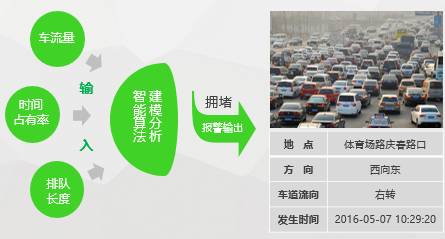 依托深度智能算法对视频监控画面中的车流状况进行拥堵、异常监测,实现拥堵报警,交通事故时间检测报警等诸多应用。