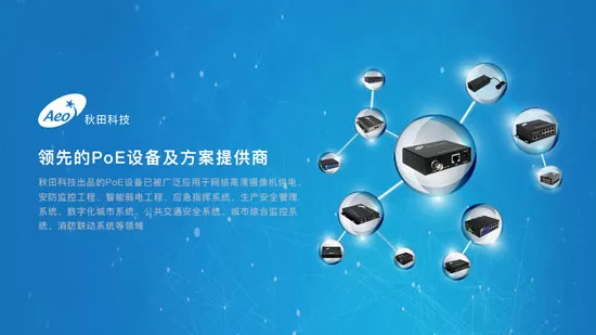 秋田科技公司PoE系列产品有:百万高清监控专用PoE供电交换机、工业级网管型PoE交换机,长距离PoE供电交换机、全千兆PoE供电交换机、同轴网络传输器、一纤环通、工业级导轨式网络光端机、GF系列网络光端机、FM系列网络光端机、PoE光纤收发器、PoE供电模块,PoE分离器等PoE相关产品。