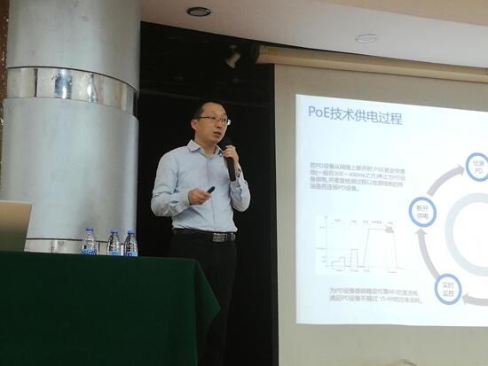 深圳市优特普技术有限公司CTO聂怀军作为特邀技术专家出席了培训活动,并围绕《以太网供电(PoE)技术与安防应用》为全体学员进行详细讲解。